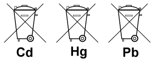 Batterien und Akkus, die Schadstoffe enthalten, sind mit dem Symbol einer durchkreuzten Mülltonne sowie der chemischen Bezeichnung des Schadstoffes gekennzeichnet.
