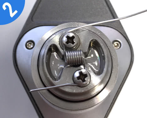 Bevor es losgeht, müsst ihr euch euer Wickeldeck (dort wo sich die Schrauben zum Anbringen des Drahtes befinden – Bild 2) angucken, um herauszufinden, welchen Durchmesser eure Wicklung haben darf. Denn der Platz in einem Verdampfer ist begrenzt. Außerdem hat der Draht auch einen Durchmesser, was wir ebenfalls berücksichtigen müssen, da die Löcher in unseren Polen und der Platz unter der Schraube für das Festklemmen des Drahtes begrenzt sind. Bedenke: Je dicker der Draht, desto geringer der Widerstand.