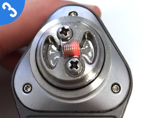 Ist das erledigt platzieren wir unsere Wicklung gerade und horizontal über der Airflow (Lufteinlass), um eine perfekte Kühlung der Wicklung beim Dampfen zu erzielen.
